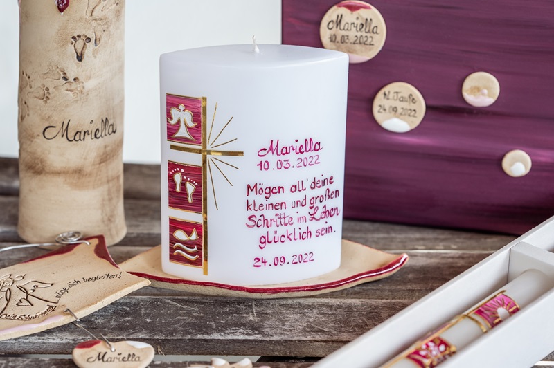 Kirchliche Feste sind Meilensteine im Leben – voller Bedeutung, Hoffnung und festlicher Freude. Mit meinen handgefertigten Kerzen oder auch individuell gestalteten Keramik-Gehängen sowie Holz-Erinnerungskisten möchte ich diese besonderen Anlässe kunstvoll begleiten. Mit traditionellen Motiven, modernen Elementen oder persönlichen Symbolen entstehen Kerzen, die nicht nur leuchten, sondern auch Geschichten erzählen.