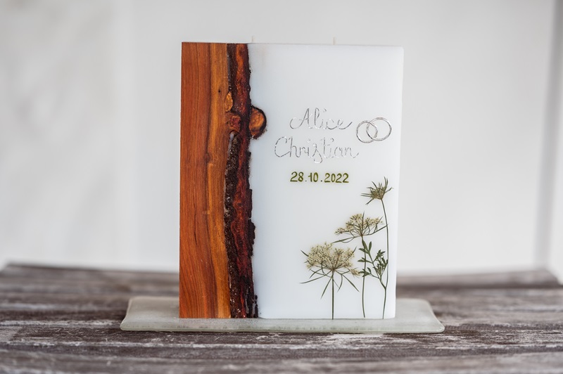 Ob individuell gestaltete Hochzeitskerzen, die das Licht eurer Liebe symbolisieren, oder kunstvolle Geschenke, die eure Wertschätzung und Freude ausdrücken – jedes Stück wird mit Leidenschaft und Freude gefertigt und erzählt eure ganz eigene Liebesgeschichte.