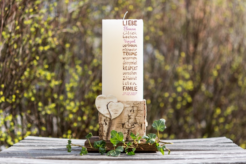Eine Hochzeit ist ein Fest der Liebe, voller besonderer Momente, Emotionen und kostbarer Erinnerungen. Mit meinen handgefertigten Geschenken und Kerzen möchte ich mitwirken, diesen einzigartigen Tag noch persönlicher und strahlender zu machen.